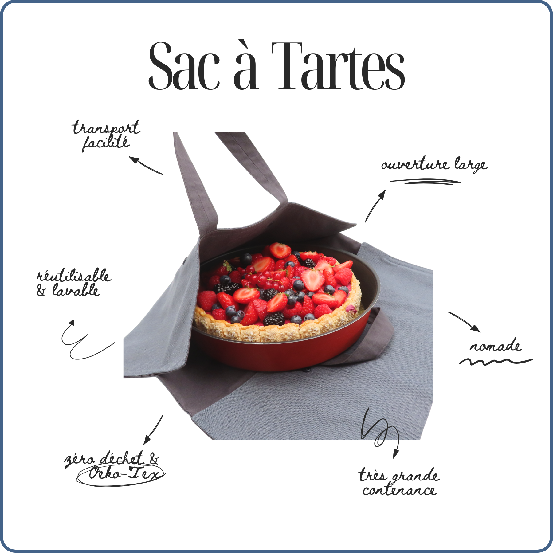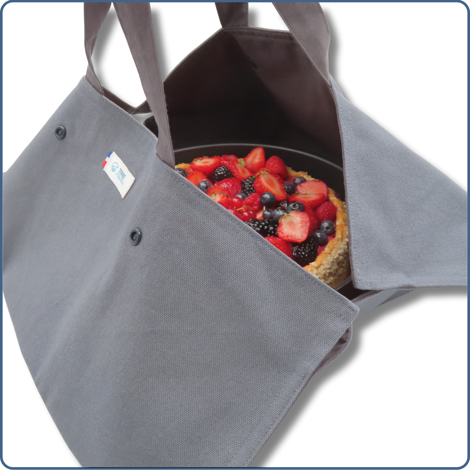 sac à tartes et cakes, lavable, tissu uni gris foncé, zéro déchetSac à tartes & cakes