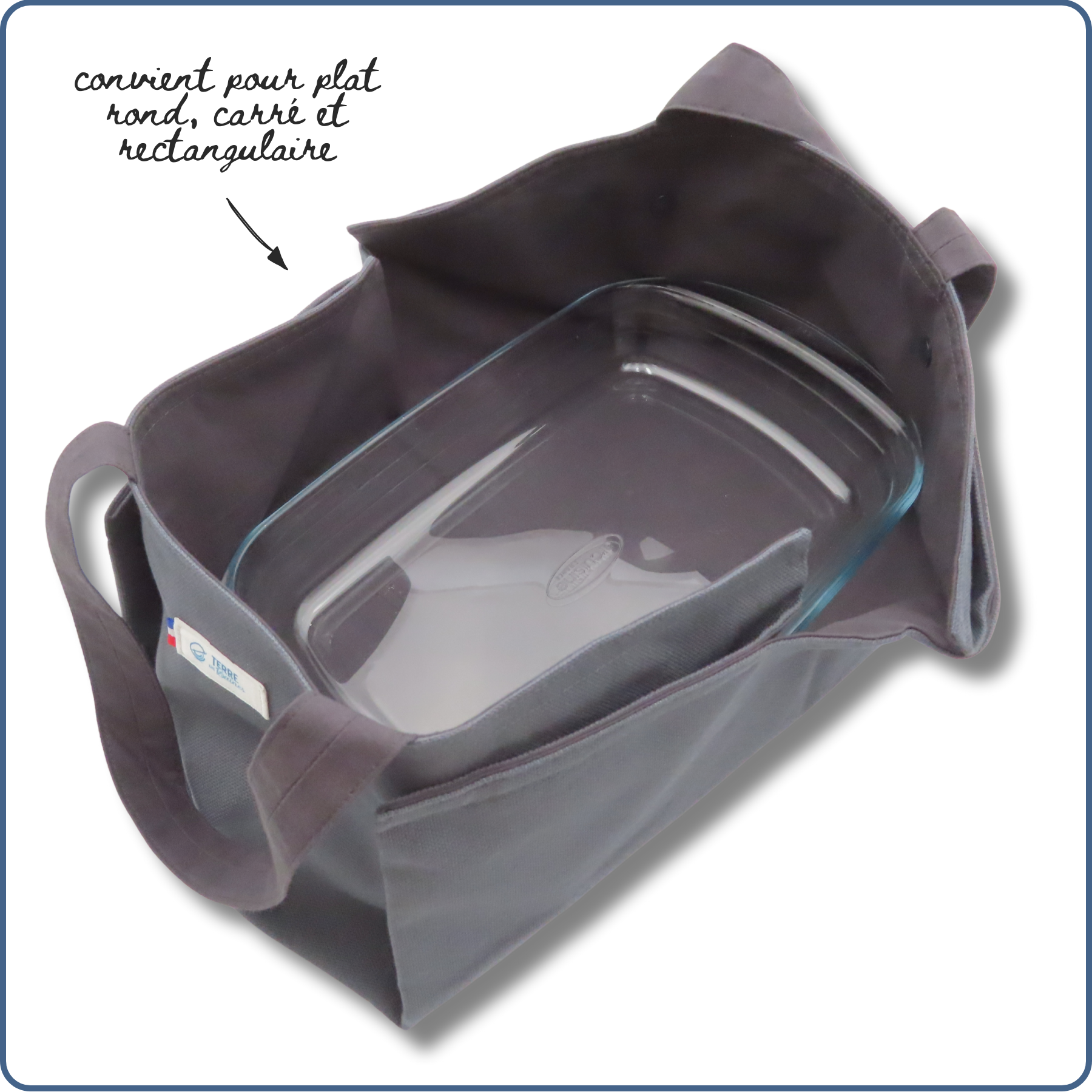 A titre informatif, le plat rond qui est dans le sac sur le 1er visuel, mesure 37cm de diamètre, mais vous avez beaucoup de marge pour y mettre un plat plus grand. Quant au plat à lasagne sur le 3ème visuel, il mesure 34x20cm.