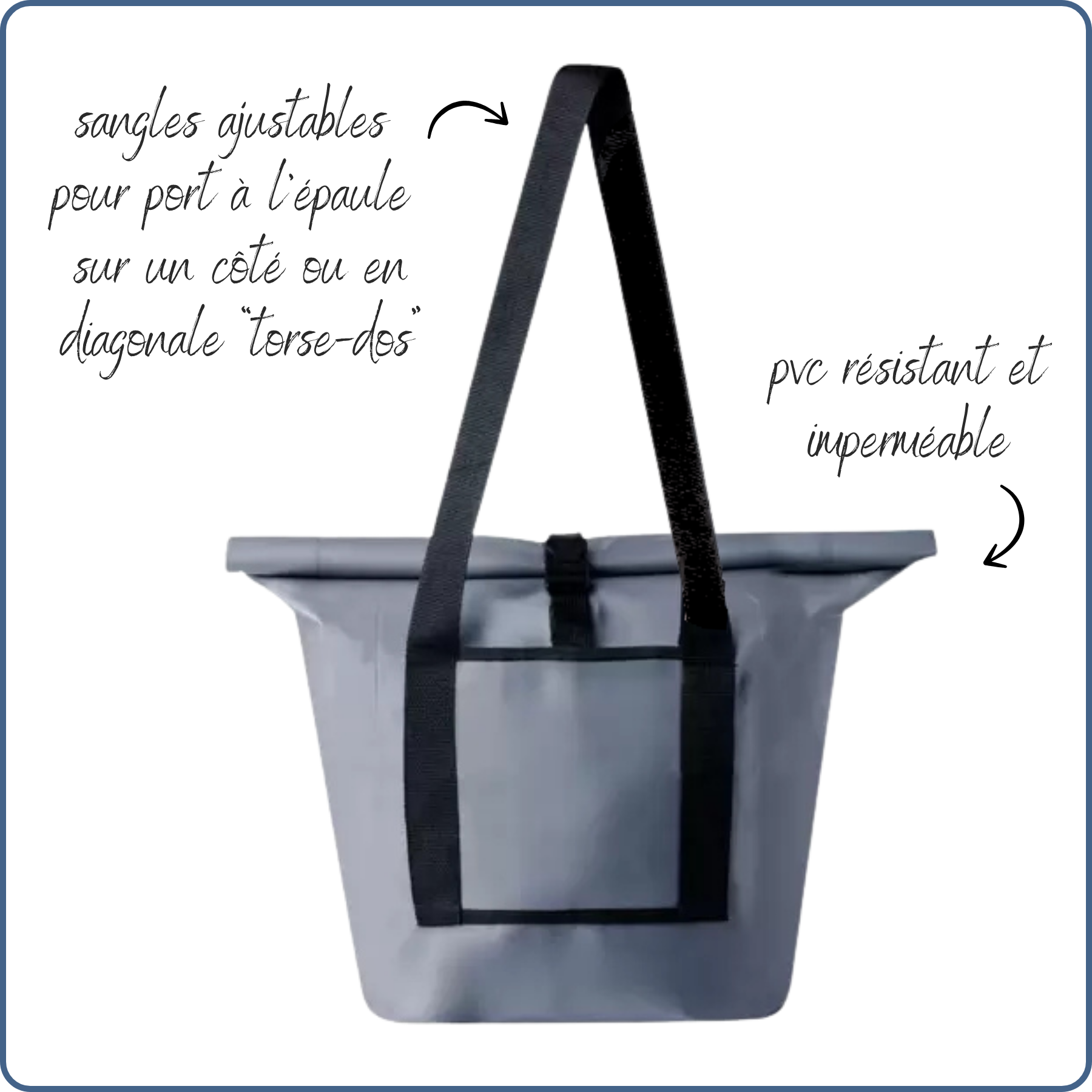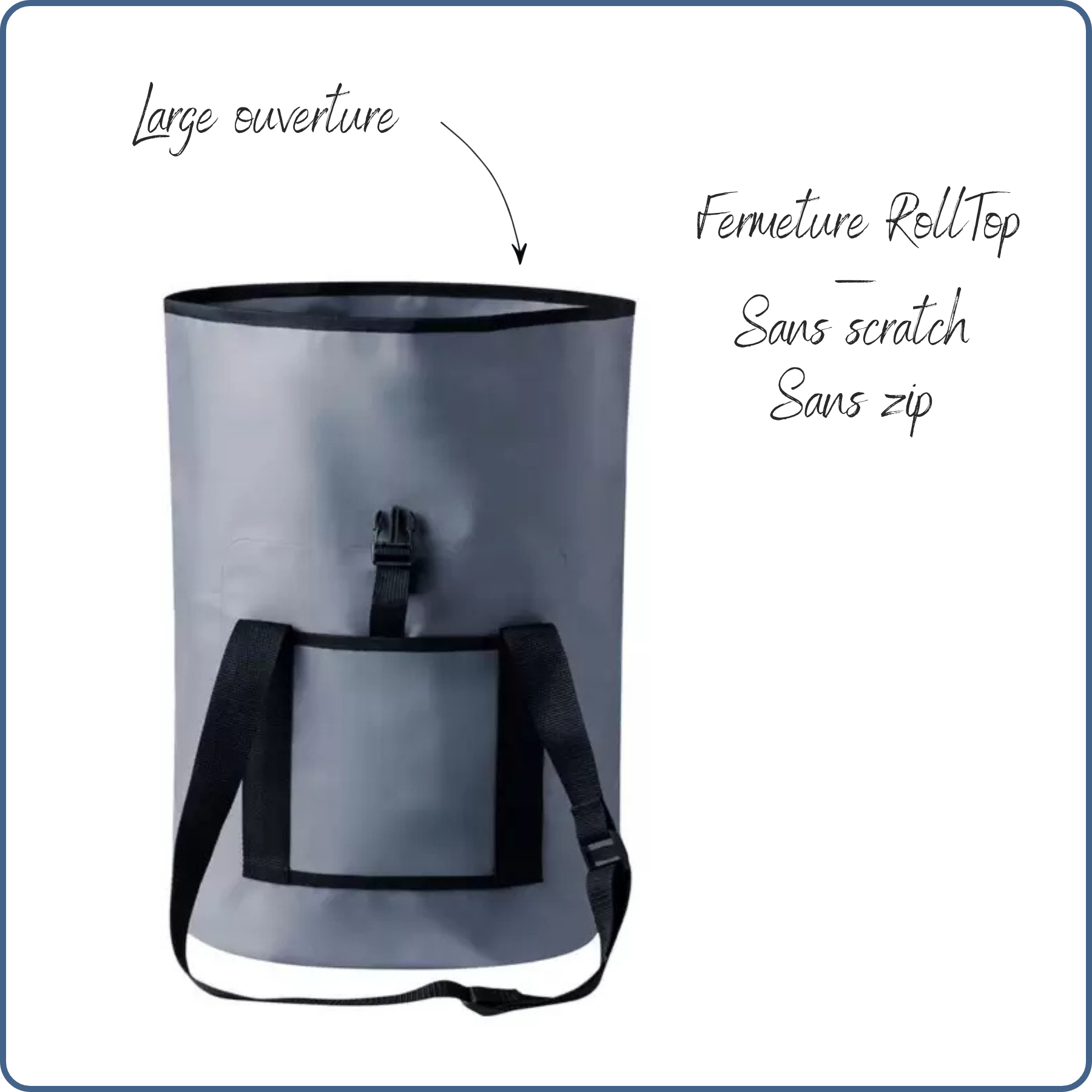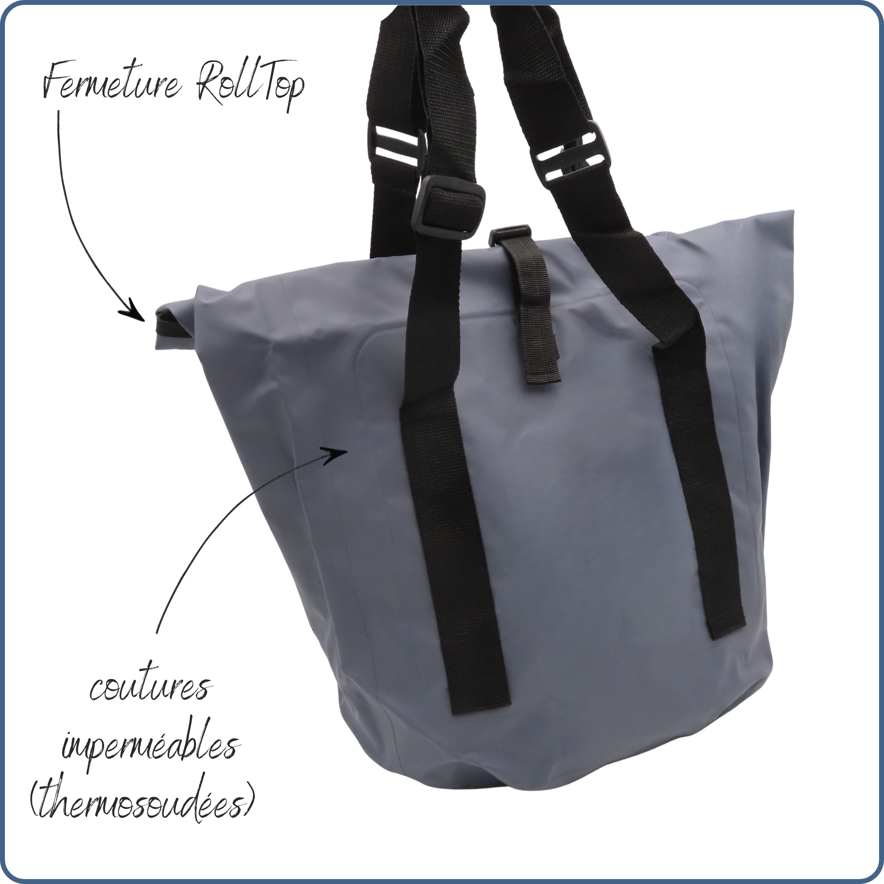 sac imperméable, activités nautiques ou vélo, couleur bleu-grisSac RollTop